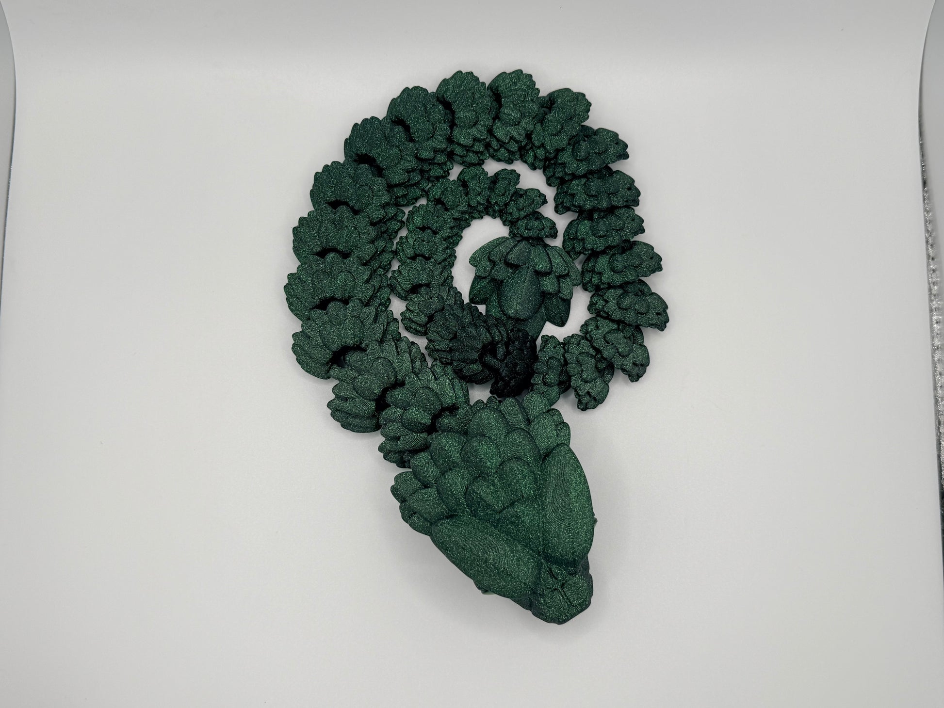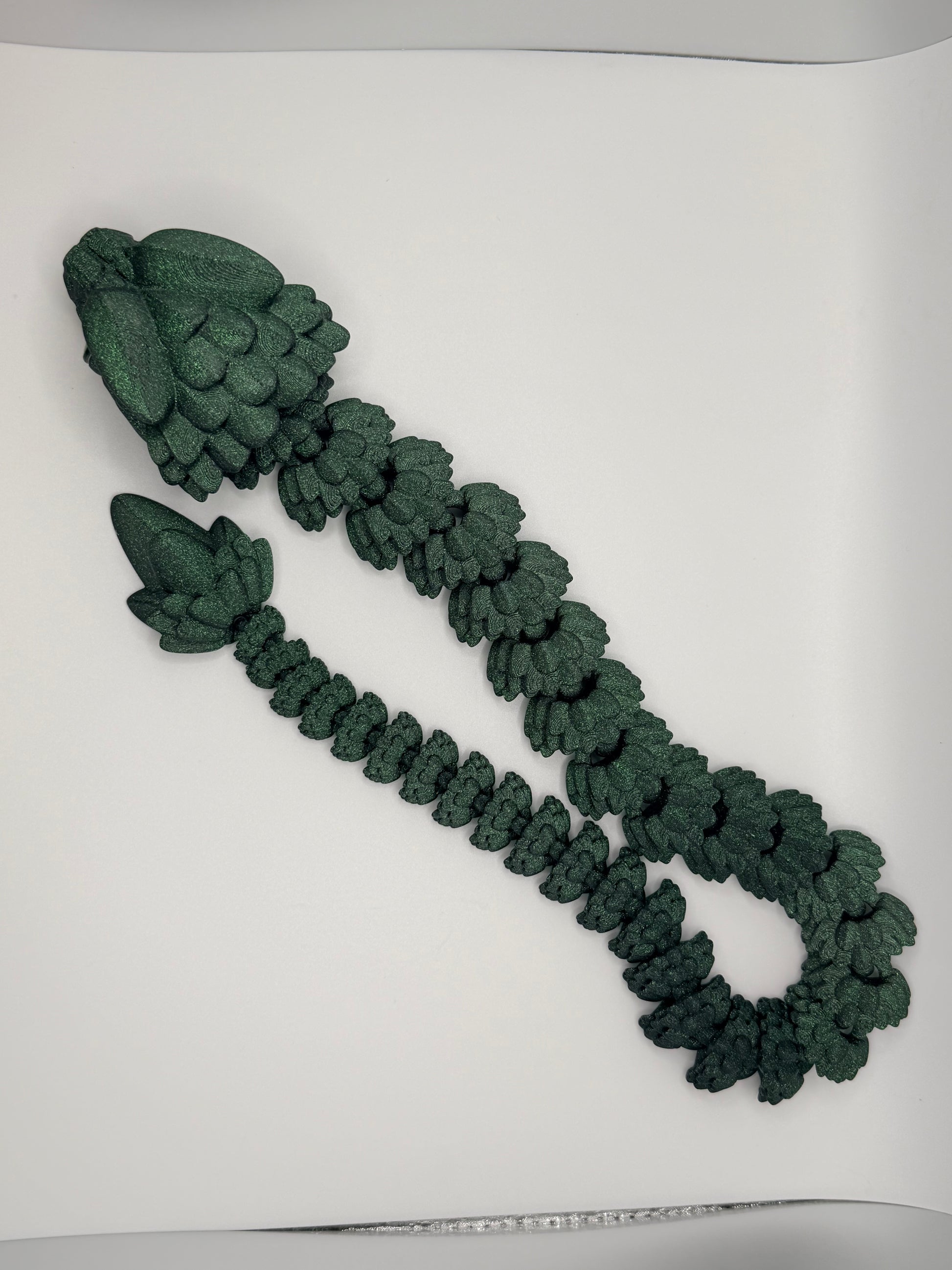 Custom 3D printed flexible snake in red/black dual color filament. Each snake is crafted with glass eyes and each has a unique look. Snake is approximately 21 inches long.